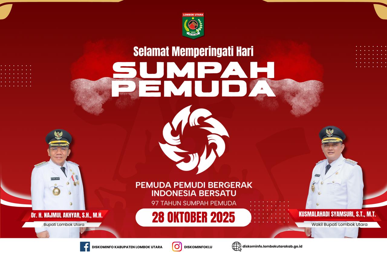 Lombok Utara, Katada.id- Bupati dan Wakil Bupati Lombok Utara, Dr.H. Najmul Akhyar S,H,. M,H,.dan Kusmalahadi Syamsuri S.T,. M.T,.Mengucapakan Selamat Memperingati Hari Sumpah Pemuda