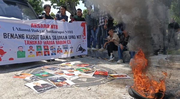 Dalam aksinya, massa membawa spanduk bertuliskan “Benang Kusut Dana Siluman DPRD NTB, Tangkap Marga Harun Cs”. Mereka juga mengarak poster bergambar 15 anggota dewan yang disebut sebagai penerima gratifikasi, dengan tanda silang berwarna merah.