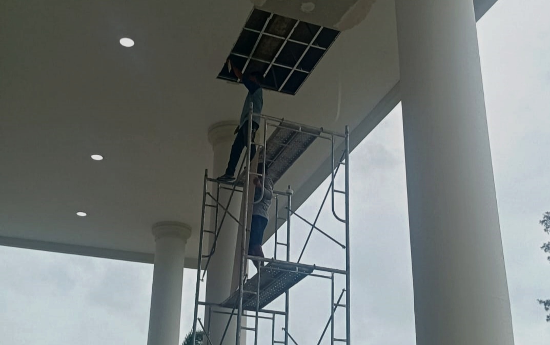 Selain soal atap dan plafon, Kariyasa juga menyoroti detail lain seperti kualitas cat yang mulai mengelupas meski gedung masih baru. Ia juga mengkritik desain taman di depan kantor yang dinilainya asal-asalan dan kurang estetis.