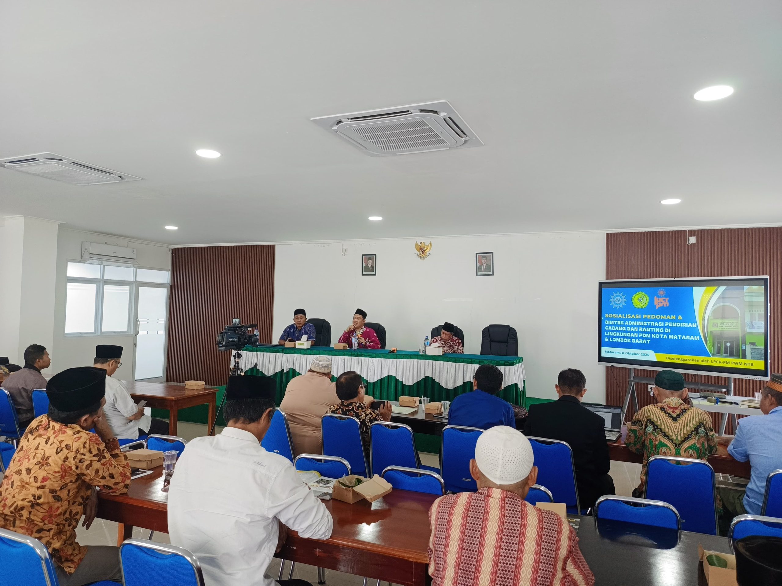 Sosialisasi dan Bimtek menghadirkan dua narasumber. Pertama, Wakil Ketua PWM NTB yang membidangi LPCR PM, Drs. Rawinggip, M.Pd, dengan materi Urgensi Pengembangan Cabang dan Ranting.