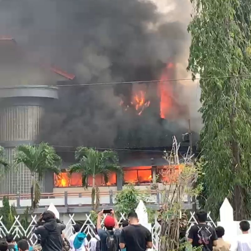 Kerusakan tak terhindarkan, sejumlah fasilitas dan barang-barang di dalam gedung dirusak. Puncaknya, kobaran api terlihat membakar beberapa bagian bangunan.