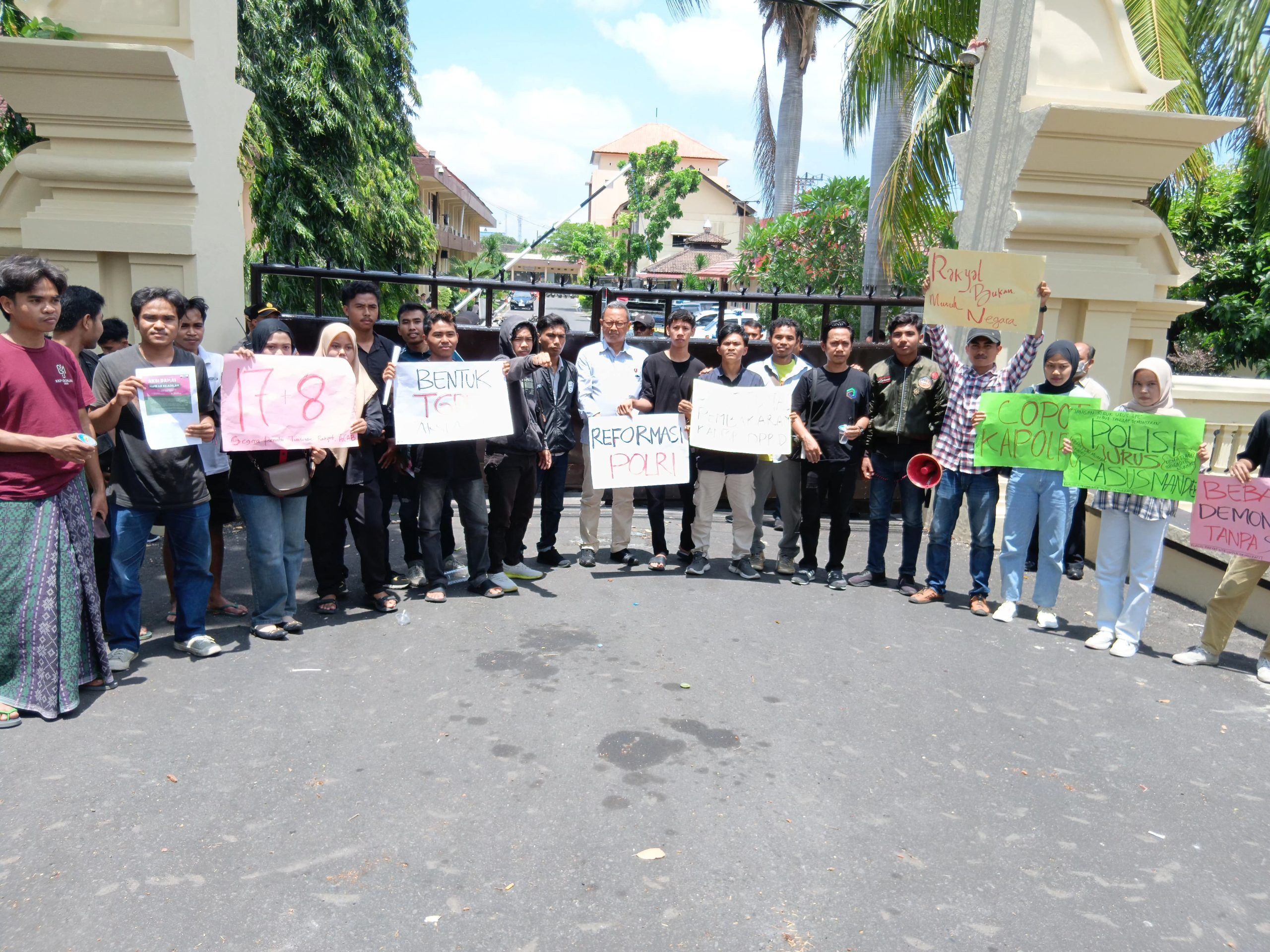 Massa juga menyerukan desakan untuk reformasi kelembagaan Polri, pergantian Kapolri, serta transparansi kinerja kepolisian. Mereka menyinggung sejumlah kasus yang dinilai mandek di Polda NTB, seperti kematian Brigadir Nurhadi dan Muardin pada kerusuhan Pilkades di Bima.