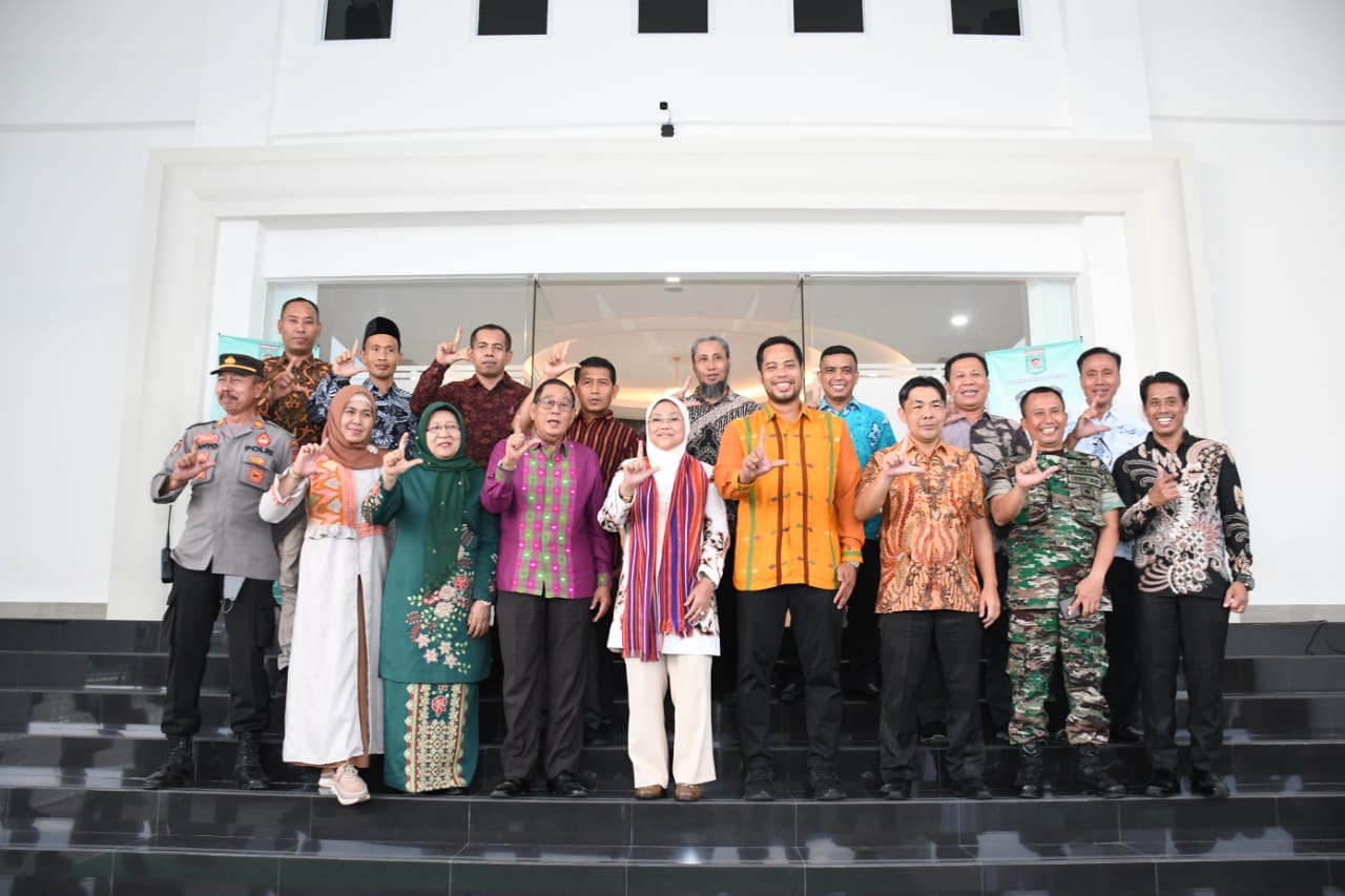 Menteri Ketenagakerjaan RI Hj Ida Fauziyah (lima kiri) usai melakukan kunjungan kerja di Kabupaten Lombok Utara didampingi Bupati Lombok Utara H Djohan Sjamsu (empat kiri) dan Wakil Bupati Lombok Utara Danny Karter FR bersama Kepala OPD.