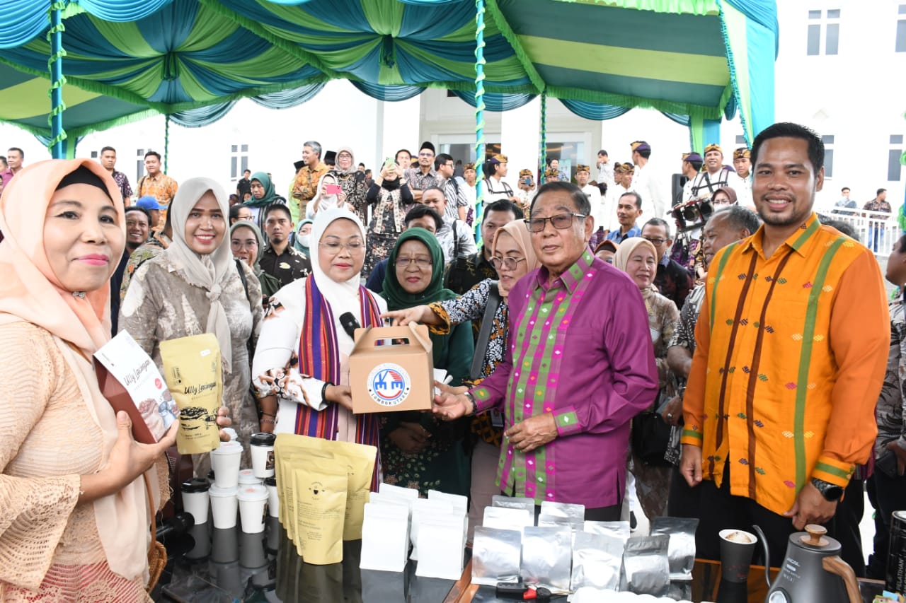 Menteri Ketenagakerjaan RI Hj Ida Fauziyah (tiga kiri) saat meninjau stand produk UMKM Kabupaten Lombok Utara.