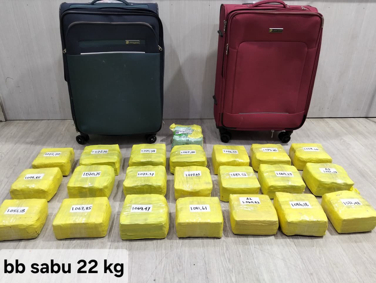 “Total barang bukti yang berhasil kami sita sebanyak 22 kilogram sabu,” ungkap Ade.