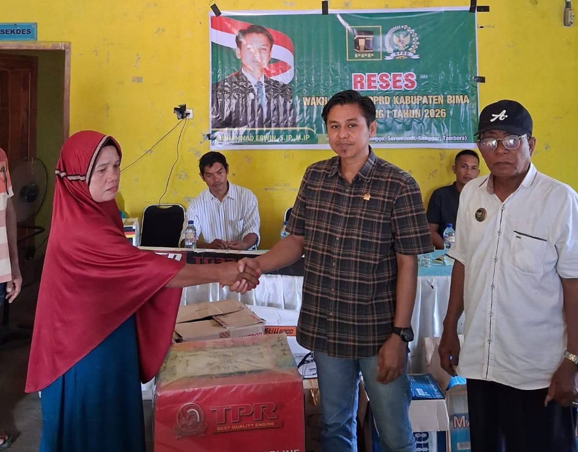 Bima, katada.id – Wakil Ketua I DPRD Kabupaten Bima, Muh. Erwin, S.IP., M.IP., kembali menunjukkan komitmennya dalam mendorong pemberdayaan ekonomi masyarakat. Melalui agenda reses, ia menyerahkan bantuan rombong gerobak UMKM serta alat-alat pertanian kepada masyarakat Daerah Pemilihan (Dapil) III, Rabu (28/1/2026).