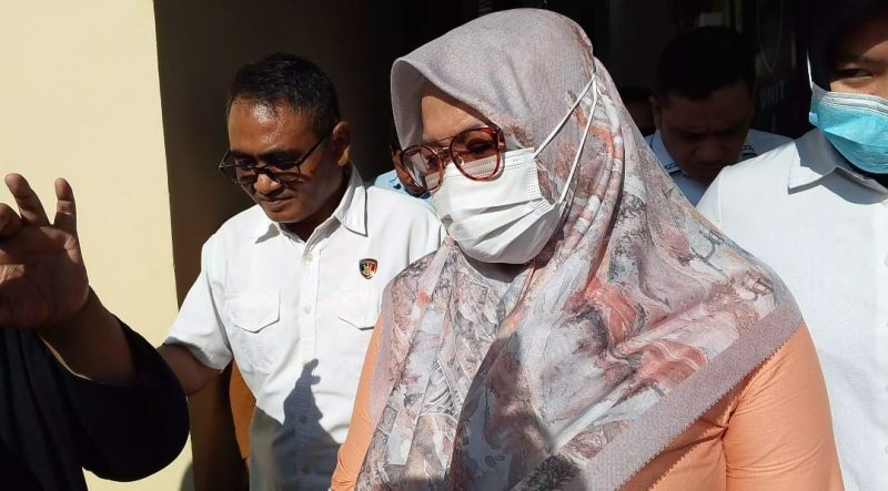 Mantan Wakil Bupati Sumbawa, Dewi Noviany saat di Polresta Mataram.