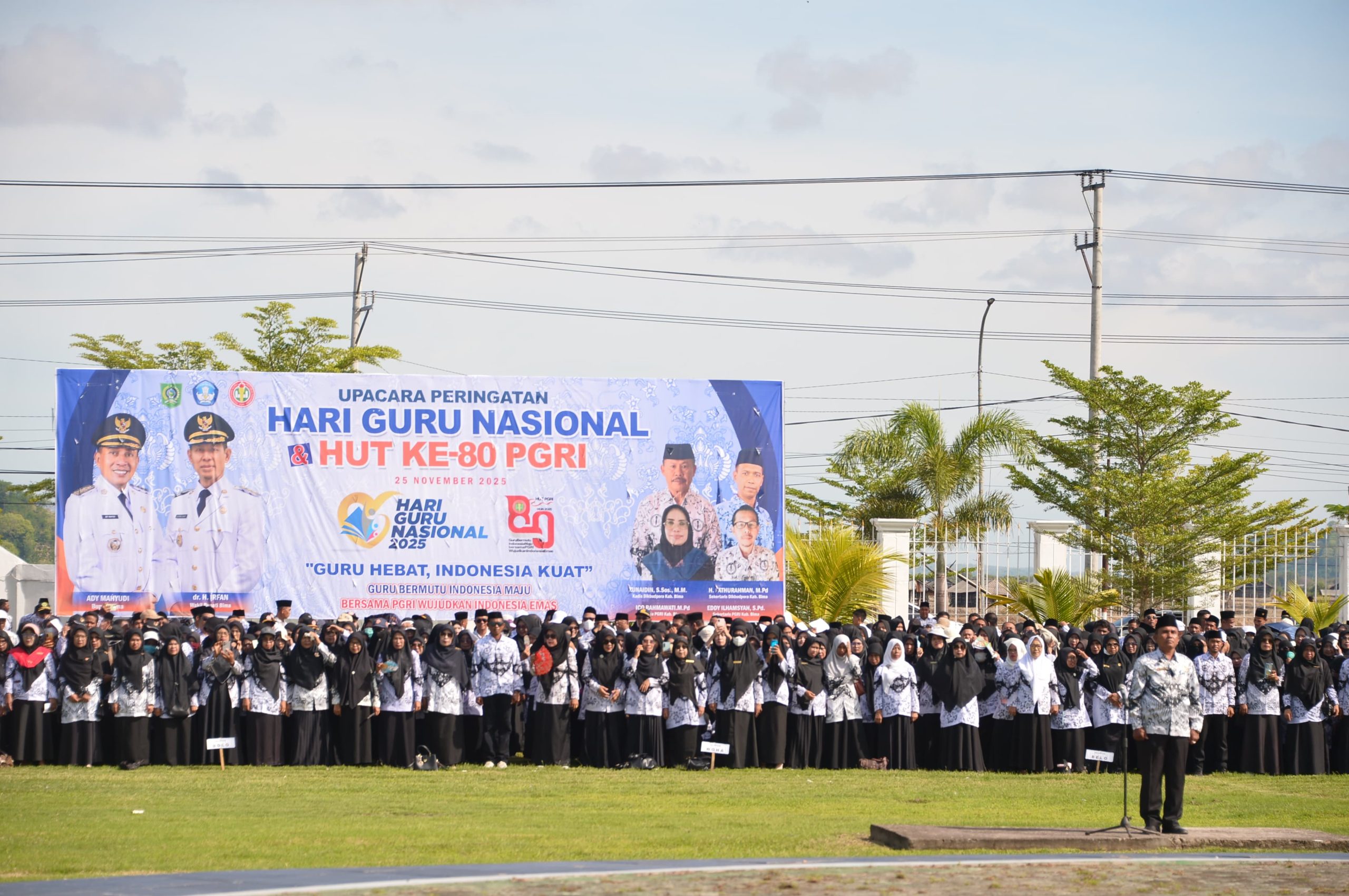 Bima, katada.id – Pemkab Bima menggelar upacara bendera memperingati Hari Guru Nasional (HGN) dan Hari Ulang Tahun (HUT) ke-80 Persatuan Guru Republik Indonesia (PGRI), Selasa (25/11). Upacara tersebut berlangsung di Lapangan Upacara Kantor Bupati Bima.