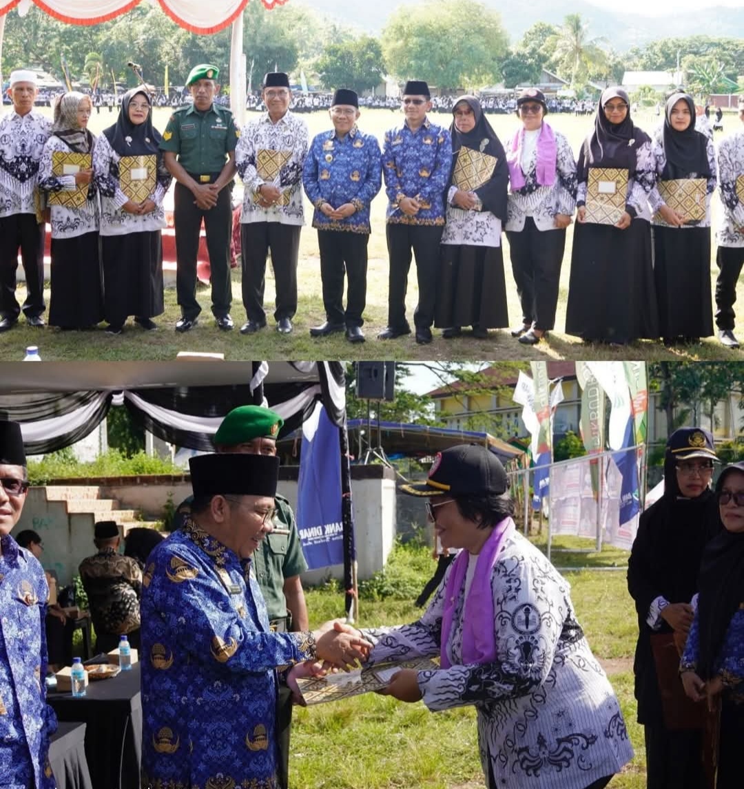 Lombok Utara, Katada.id – Bupati Lombok Utara H Najmul Akhyar menjadi inspektur upacara Peringatan Hari Ulang Tahun (HUT) ke-80 Persatuan Guru Republik Indonesia (PGRI) dan HUT ke-54 Korps Pegawai Republik Indonesia (KORPRI) di Lapangan Umum Gondang, Kecamatan Gangga, Selasa (25/11).