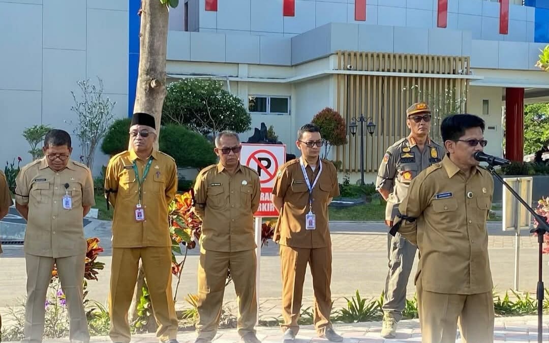 Pj Sekda KLU, Sahabuin saat memimpin apel koordinasi di depan halam RSUD KLU